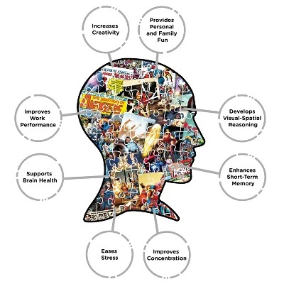 Precision Fit, Premium Quality, Glare Free, Virtually No Puzzle Dust. Increases creativity, Provides Personal and Family Fun, Develops Visual-Spatial Reasoning, Enhances Short-Term Memory, Improves Concentration, Eases Stress, Improves Work Performance, Supports Brain Health