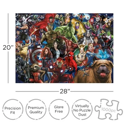 - UNLEASH YOUR INNER SUPERHERO… You’re sure to have a marvelous time putting together this 1000 piece puzzle featuring some of the world’s favorite superheroes, such as Spider-Man, Iron Man, and Captain America!