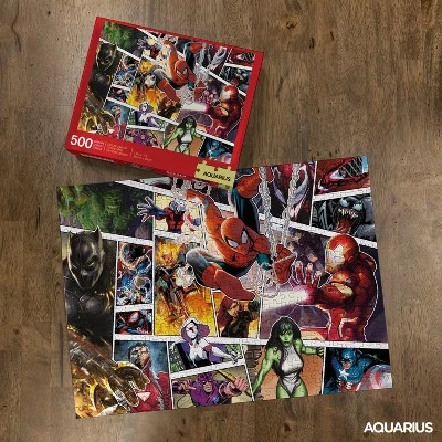 - UNLEASH YOUR INNER SUPERHERO… Charge into the Marvel Universe and rise to the challenge of completing this 500 piece puzzle featuring Spider-Man, Iron Man, Black Panther, Hulk, Captain America and many more. Completed puzzle measures 14 x 19 inches