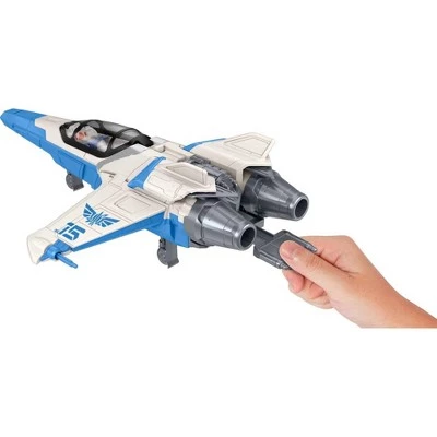 - A lever underneath the spacecraft activates the re-creation of a hero moment from the movie while a button on top of the jet shoots projectiles from both wings!