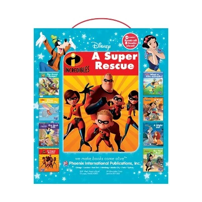 Ready, set, read! Join Mickey, the Incredibles, Mulan, and more Disney favorites on a reading adventure! Eight illustrated books featuring Disney friends and heroes come packaged with a sleek Me Reader Module that reads each book aloud. Choose a book, press the matching book and page buttons on the module, and hear the whole story, along with fun and surprising sounds! Follow along in the book for an independent reading experience that builds confidence in beginning readers. Story sounds and expressive narration enhance comprehension.