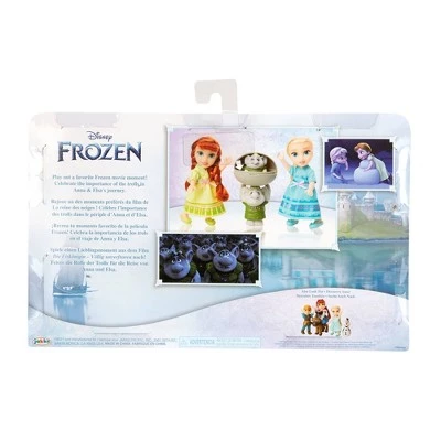 Relive the movie moment when Anna and Elsa need the help of their troll friends! This Disney Frozen gift set comes with Anna and Elsa dressed in their iconic pajamas, two troll friends, and toy rock that the trolls can fit inside of to transform! Perfectly petite in size, these dolls can travel with you anywhere! Gift them to someone who loves Disney’s Frozen and watch their imagination soar!