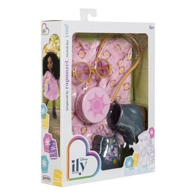 Inspired by Rapunzel, this Disney ily 4EVER 18-inch doll fashion is the perfect outfit for a day at the art fair. Your doll will embrace her artistic side with a dreamy pink tunic, flower-print boots and trendy sunglasses. Complete the look with a sun-print purse and your doll is ready for a crafty day. Outfit is shown on Inspired by Elsa doll and is compatible with most 18-inch dolls. (Dolls sold separately, available at Target)
