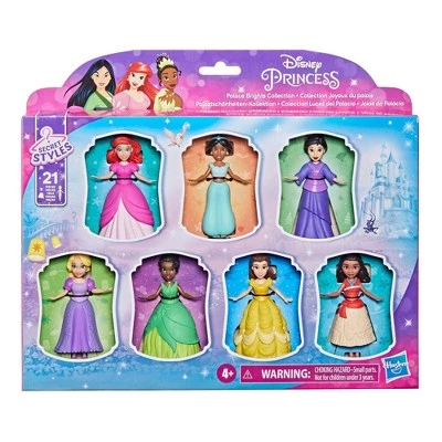 - PALACE BRIGHTS COLLECTION: Package contains 7 Disney Princess small dolls in brightly colored removable outfits, so kids can imagine all sorts of adventures from their favorite Disney Princess movies