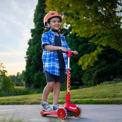 Team up with Lightning McQueen & the gang to hit the races! Featuring colorful Disney Cars themed graphics, the Pixar Cars 3-Wheel Kick Scooter is sure to go the distance. With a 3-wheel design for maximum balance and the intuitive lean-to-steer feature, scooting is a joy. Its easy folding design and lightweight frame mean it’s a breeze to carry and store, while the height adjustable handlebar allows kids to keep riding, even as they keep growing. Get ready to race, ready…set…GO!