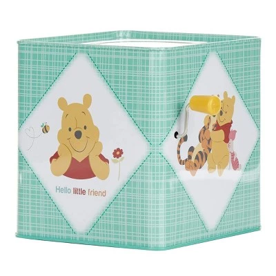 Entertain any child with this classic Jack-in-the-Box toy featuring the song, “Winnie the Pooh.” Wind the handle on the tin box to reveal a beaming Winnie the Pooh! The handle is even sized perfectly for smaller hands to give it a turn. Jack-in-the-Box toys are an important piece in any playroom and teach object permanence along with promoting fine motor skills. Use this toy as an exciting prop for story time! New design.