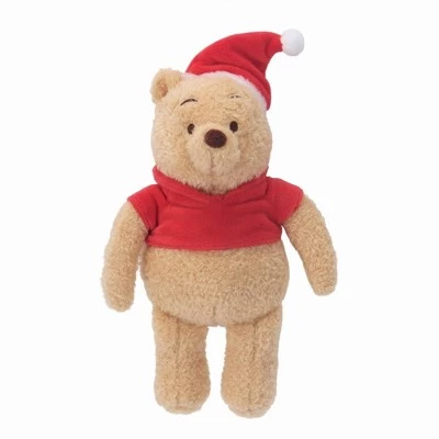 Winnie the Pooh is one of the most loveable characters in the Magic Kingdom. This Pooh plush stuffed animal is sure to be a favorite of your little one. He is approximately 10 ½” long and is made of a tan color furry boucle fabric. His nose is a dark brown minky and his face is embroidered making him baby safe. He loves wearing his favorite red velour shirt and is ready for the holidays with his red and white Santa hat. Pooh makes a great Christmas gift, baby shower gift and welcome home baby gift.