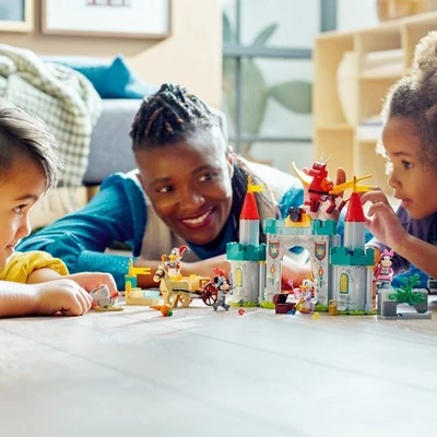 Kids aged 4 and up can go on an adventure and develop communication and role-play skills with this LEGO Disney Mickey and Friends – Mickey and Friends Castle Defenders (10780) set, featuring a castle with towers, 4 small builds, Mickey Mouse, Minnie Mouse, Daisy Duck and Donald Duck minifigures, a buildable dragon and a ridable LEGO horse figure. All the minifigures are in fantasy dress for the first time. This LEGO 4+ set is packed with engaging details to ensure children have a great play experience. Each bag of bricks contains a complete model that kids can build quickly to get the play started fast. It also has 4 Starter Bricks to kick-start the building process. 4+ construction toys are a good way for adults to share the fun with kids. It’s easy to get started – as well as picture instructions, this set comes with interactive digital building instructions on the free LEGO Building Instructions app, to help kids visualize as they build.