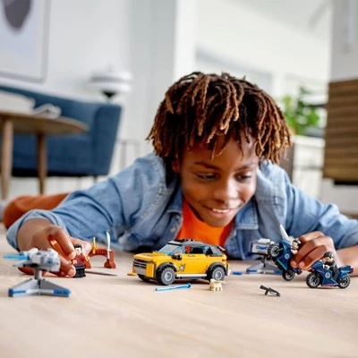 - Includes 4 minifigures – Shang-Chi, Katy, Wenwu and Razor Fist, plus a Morris figure, an SUV, 2 shooter turrets and 2 motorcycles