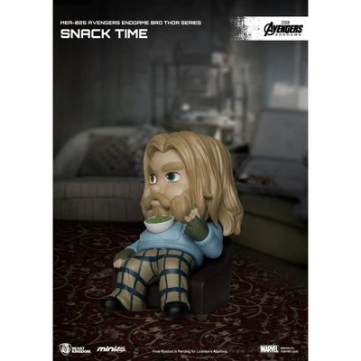 The classic 3-inch Mini Egg Attack (MEA) series of figurines by Beast Kingdom’s ‘Entertainment Experience Brand’ is back with a big, brotherly bang. The popular ‘Bro Thor’ character from the Avengers: Endgame is ready in mini form to lounge next to a couch near you. Which version will be ready to take on the mightiest, angriest in the universe? It is up to you to choose or better yet take them all! Calling the Mjolnir -I may be a little chubby around the edges, but I can still summon the mighty Mjolnir!Snack time- Do you want to eat? I can share it with you!Thinking time – To eat the hot dog, or not to eat it, that is the burning question!Nap time -Even the mighty Thor needs beauty sleep, how else will I have energy for gaming and snacks?A full set of four designs, using meticulous craftmanship, recreating the appearance of the now infamous character in full! A charming yet not exactly hygienic version of Thor is the perfect antidote to the muscle toting superheroes! With a new enlarged MEA size, this chubbier Bro Thor is a fun series for fans to enjoy!