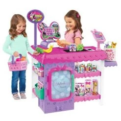 Minnie Mouse fans will have a bow-tastic shopping experience with the Disney Junior Minnie Mouse Marvelous Market. This play market has everything little ones need to open their own shop, Minnie Mouse-style! Kids will love shopping around the market and using the basket to store all their groceries. Little shoppers can visit the play refrigerator and cross milk and juice off the grocery list or pick-up a healthy snack of fruits and vegetables. When the shopping adventure is complete, kids can load the items on the kid powered conveyer belt and ring up some fun with the cash register that makes real cash register sounds! Then, they can even swipe their pretend Minnie Mouse credit card to complete their transaction! Kids can use the reusable grocery tote to store over 30 pretend groceries. This adorable playset inspires hours of both customer and cashier play! The Minnie Mouse Marvelous Market includes an electronic cash register and scanner, cash drawer with play money and credit card, working conveyer belt, shopping basket, reusable grocery tote, and over 30 pretend play groceries. Cash Register requires 2 x AAA batteries (not included) and Card Reader requires 2 x AAA batteries (not included). Ages 3+