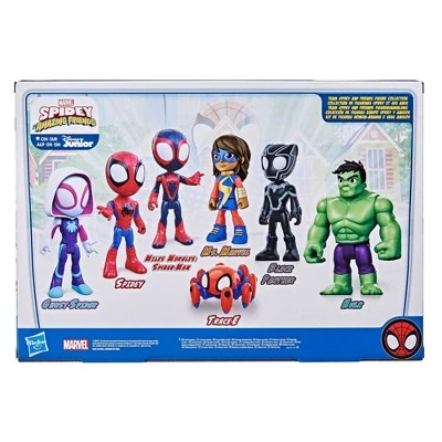 - ALL 7 HEROES IN ONE COLLECTION: Let’s swing, Spidey Team! This collection includes all 7 favorite Spidey and His Amazing Friends heroes: Spidey, Miles Morales: Spider-Man, Ghost-Spider, Hulk, Black Panther, Ms. Marvel and Trace-E