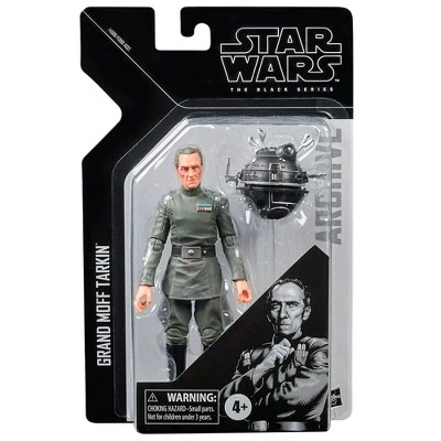 The 6-inch-scale Black Series figure is detailed to look like the Grand Moff Tarkin character from Star Wars: A New Hope, featuring premium detail and multiple points of articulation.
