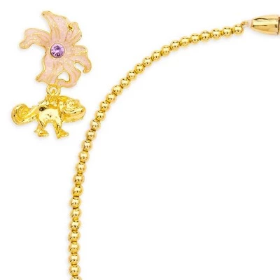Lend a touch of sunshine to any Tangled costume with this breathtaking jewelry set designed to complement our Rapunzel costume collection. A golden necklace with floral filigree and faceted gems is matched by floral earrings with Pascal bobs. Set includes necklace and clip earrings. Bead necklace features snap together closure. Genuine, Original, Authentic Disney Store Product.
