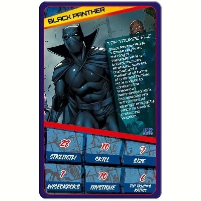 - MARVEL UNIVERSE: Find out how much of an wisecrack Spider-Man is, Iron Man’s skill and Black Panther’s mystique in this edition of Top Trumps!